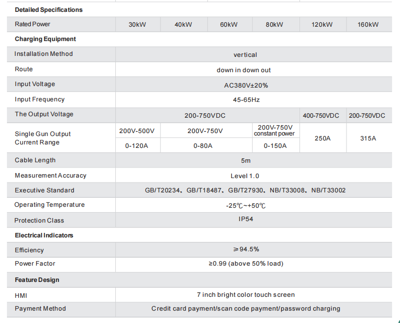 1)Charger Station Power Range : 30kW ~ 160kW.